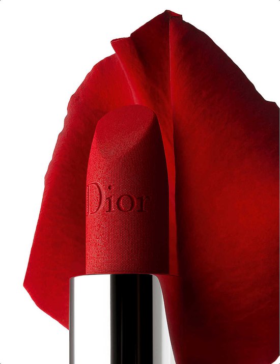 - Un rossetto Rouge Dior nella tonalità 999, dal finish vellutato. La nuova finitura vellutata abbellisce la tonalità iconica della casa.
