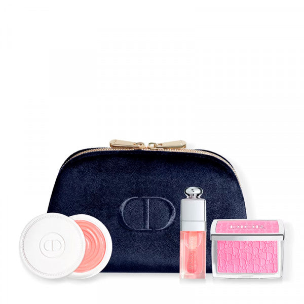 Regala alle feste una firma Dior con questa pochette contenente tre prodotti per il trucco della Maison Dior. All'interno, la selezione di creazioni per labbra, guance e unghie è stata progettata per comporre un rituale di luminosità naturale.